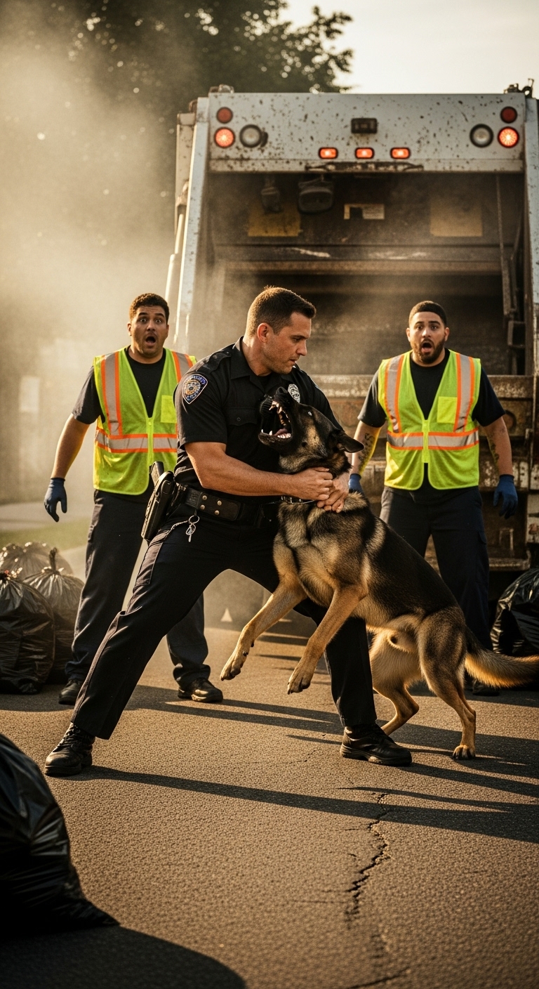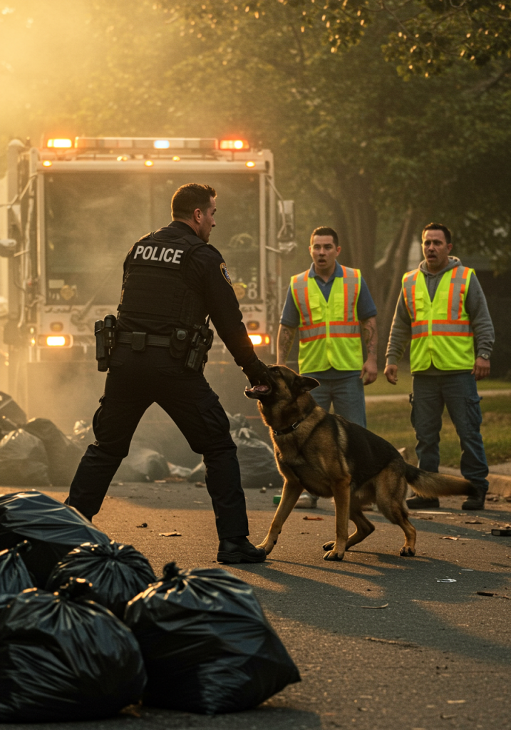 During a Quiet Morning Patrol, My Police Dog Suddenly Pulled Me Toward a Garbage Truck — And What We Found Inside Began a Story No One in Town Would Ever Forget