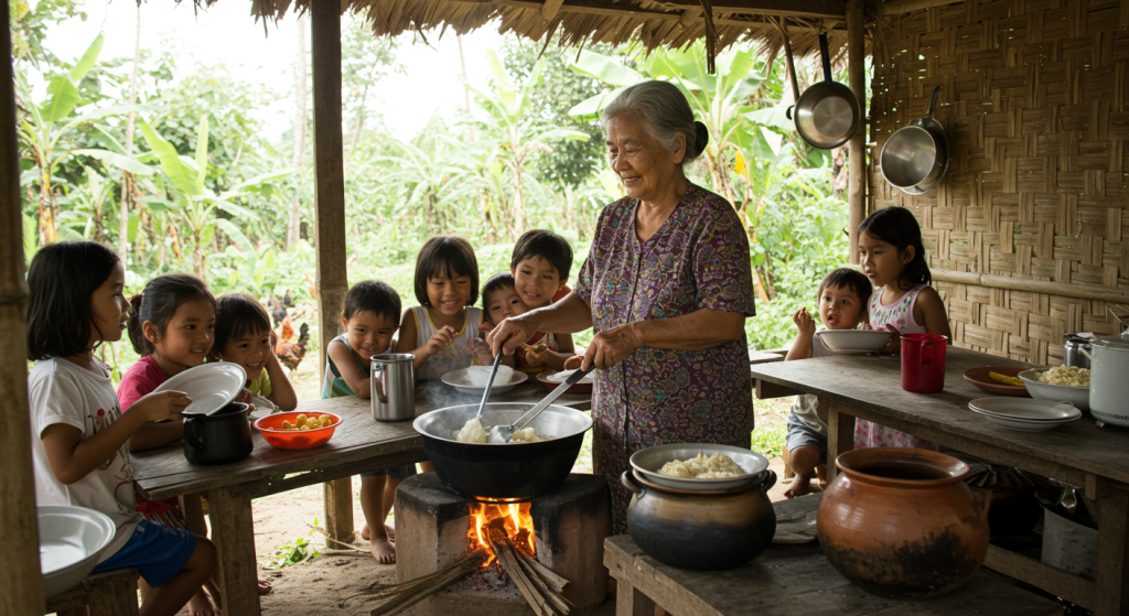 Sa pagbukas ng bawat bagong araw, bago pa man sumilip ang ginintuang sinag ng araw sa silangan, si Lola Mariaay gising na. Sa dilim pa ng umaga, maririnig ang mahinang kaluskos ng kanyang mga yapak sa kawayang sahig, ang pagaspas ng kanyang kamay habang sinisindihan ang lumang kalan. Ang usok mula sa kahoy ay bumabalot sa hangin, nagdadala ng amoy ng bagong lutong kape at mainit na kanin. Bawat galaw niya ay puno ng layunin, bawat paghahanda ay para sa mga magigising pa lamang. Sa kanyang pagmamadali, ang kanyang isip ay napupuno ng pag-asa—pag-asa para sa isang araw na puno ng biyaya, at pag-asa para sa kinabukasan ng kanyang pamilya. Hindi niya alintana ang kirot ng kanyang mga kasukasuan; ang pagmamahal ang nagsisilbing gasolina sa bawat paggawa.Ang paglilinis ng bakuran, ang pagdidilig ng kanyang maliliit na pananim na siyang magbibigay buhay sa kanilang hapag-kainan, lahat ay ginagawa niya nang buong puso, tahimik nanagtatrabaho habang ang mundo ay natutulog pa.