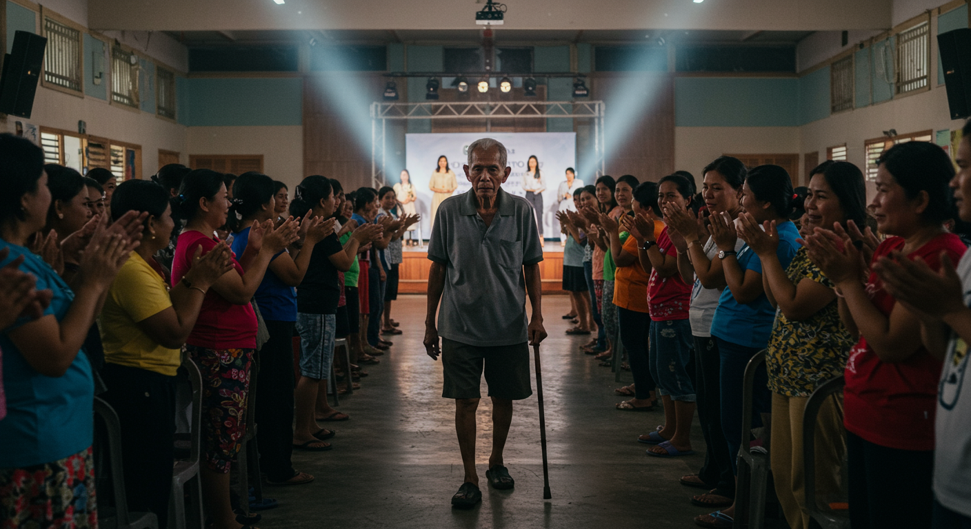 Nanginginig ang mga paa ni Mang Tonyo habang dahan-dahan siyang tumayo. Sabawat hakbang patungo sa entablado, tila bumabalik ang lahat ng kanyang pagod, lahat ng kanyang hirap. Ngunit sa pagkakataong ito, ang bawat hakbang ay puno ng dignidad. Habang umaakyat siya sa entablado, ang katahimikan ay napalitan ng isang malakas na palakpakan. Hindi lang basta palakpakan—ito ay palakpakan ng paghanga, paggalang, at paghingi ng tawad. Ang mga dating nangutya ay ngayon ay nakayuko, ang kanilang mga mata ay puno ng pagsisisi.