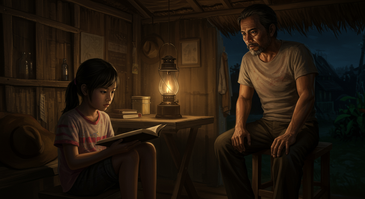 Isang gabi, habang naghahanda ng hapunan si Mang Tonyo, nakita niya si Liza na nag-aaral ng kanyangmga aralin sa ilalim ng ilaw ng gasera. Sa kabila ng pagod, nakita niya ang determinasyon sa mukha ng kanyang anak. Doon, sa gitna ng katahimikan ng gabi, nagpasya si Mang Tonyo. Nakakita siya ng solusyon, isang paraan upang matupad ang pangarap ng kanyang anak, kahit pa kapalit nito ang sarili niyang kaginhawaan.