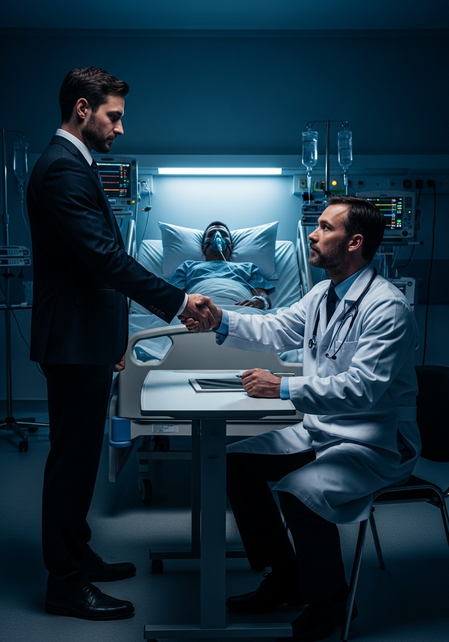 Dr. Evans entered the ICU, the soft squeak of his loafers the only sound in the hushed stillness. He approached the bed where Anna lay, a pale figure lost in a sea of white sheets and tangled wires. He scanned the monitors, his brow furrowed, then turned to the senior nurse standing vigil.