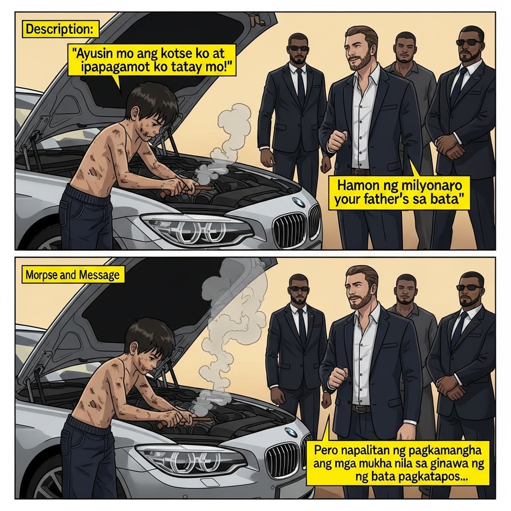 Sandaling katahimikan ang bumalot. Ang lahat ay naghintay kung ano ang sasabihin ng mayamang Don. “Tao ka lang sa kalsada, marumi, dugyot, walang pinag-aralan. Ano ang alam mo sa makinang ito na hindi alam ng mga mekanikong binayaran ko ng milyon?” malamig na tanong ni Don Ricardo. Ngunit hindi natinag si Tomas. “Hindi po ako milyonaryo, pero araw-araw po hawak ko ang makina. Hindi po importante kung gaano ito kamahal. Ang makina pareho lang po ng prinsipyo. Kaya ko pong subukan.” Napataas ang kilay ng Don. Sa unang pagkakataon, nakaramdam siya ng kakaibang kumpiyansa mula sa isang bata—isang kumpiyansang hindi nagyayabang kundi matatag at totoo.