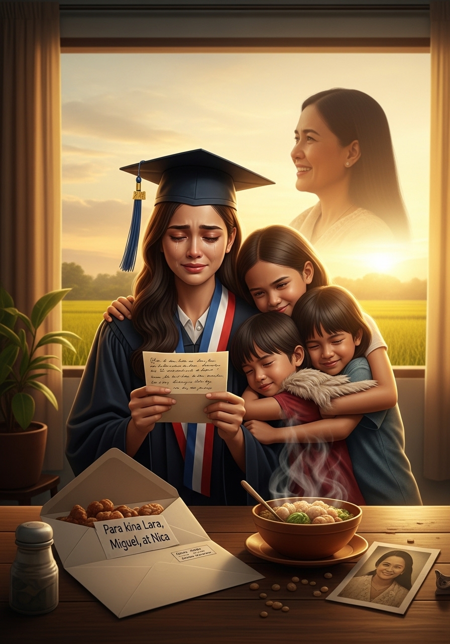 Hinawakan ni Lara ang sulat, niyakap ang mga kapatid, at sabay-sabay silang tumingala sa langit.