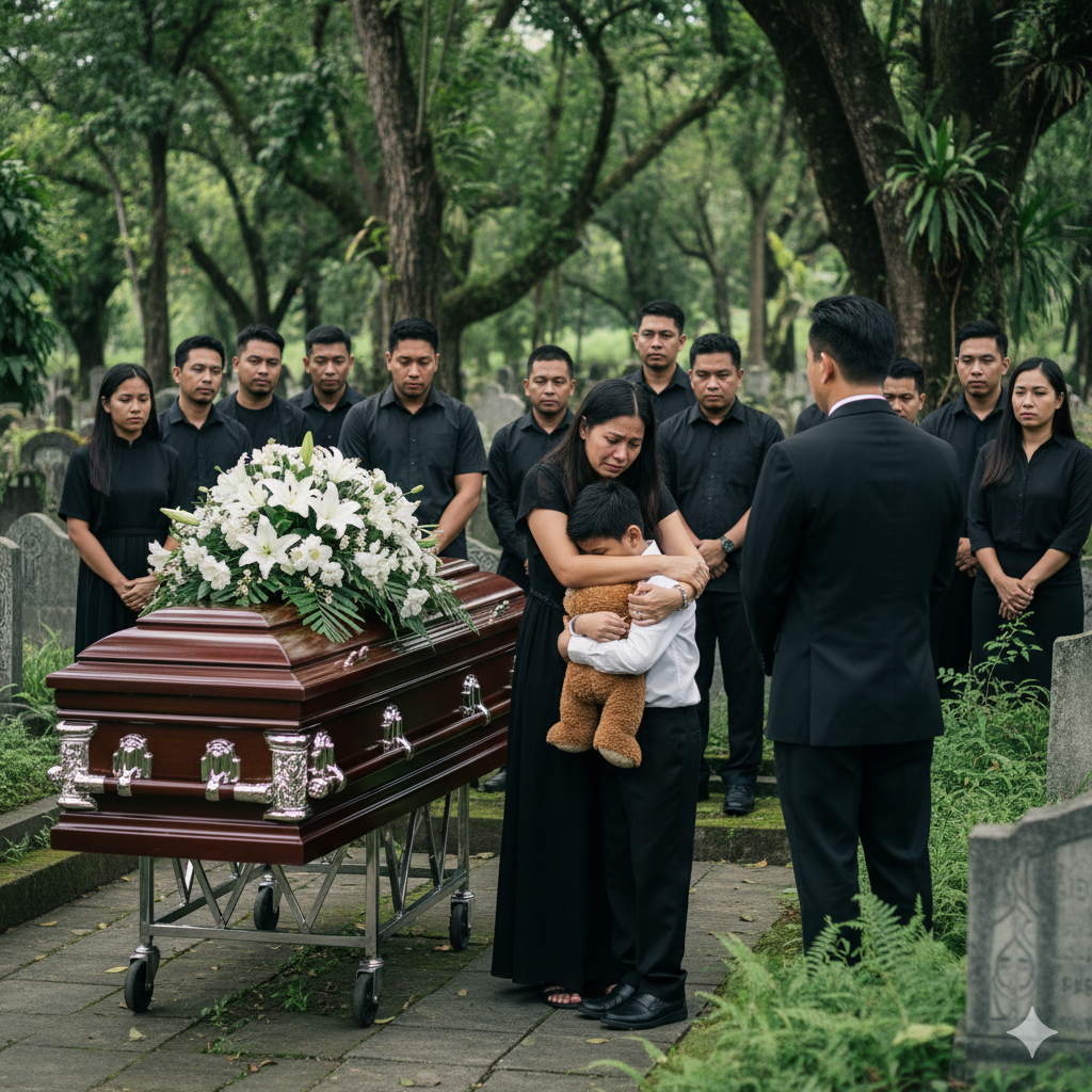 Si Clara, na nagulat, ay hinila ang kanyang anak na lalaki, ang mga luha ay dumadaloy sa kanyang mga pisngi—hindi dahil sa kalungkutan, kundi dahil sa pagkabigla. Si Mrs. Carol, isang kapitbahay, ay bumulong sa kanyang asawa na naitala ng kanilang anak na babae ang buong libing sa kanyang telepono. “Kailangan nating ibigay ito sa pulisya,” sagot niya.