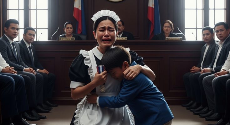 Pagsapit ng araw ng pagdinig, sinuot ni Clara ang lumang uniporme niyang pangkasambahay—iyon lang ang malinis niyang damit. Nanginginig ang mga kamay niya, pero matatag ang tingin.