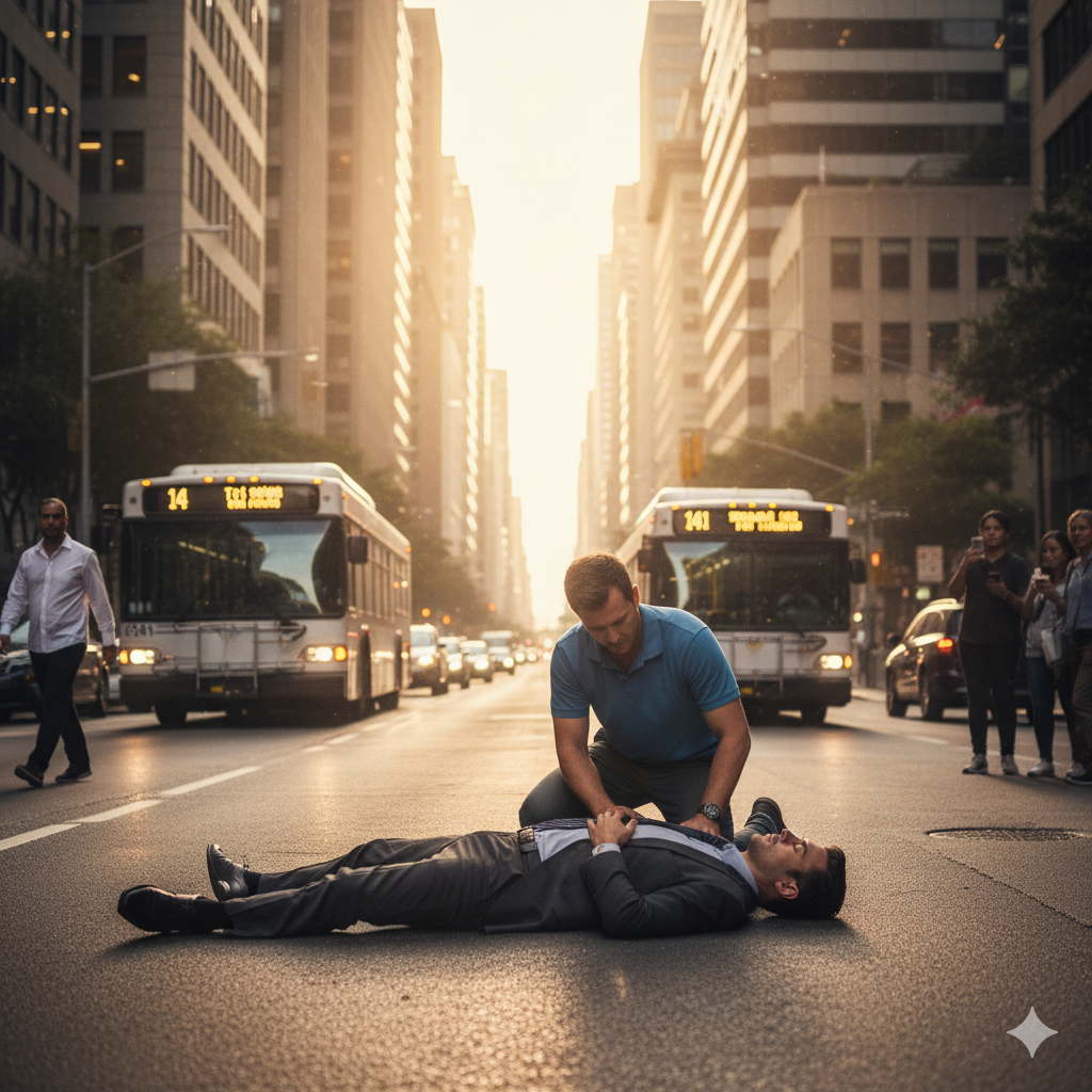Sa kanto ng Ayala, may lalaking bigla na lang bumagsak sa gitna ng pedestrian lane.