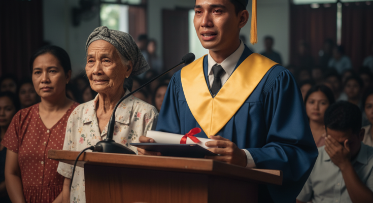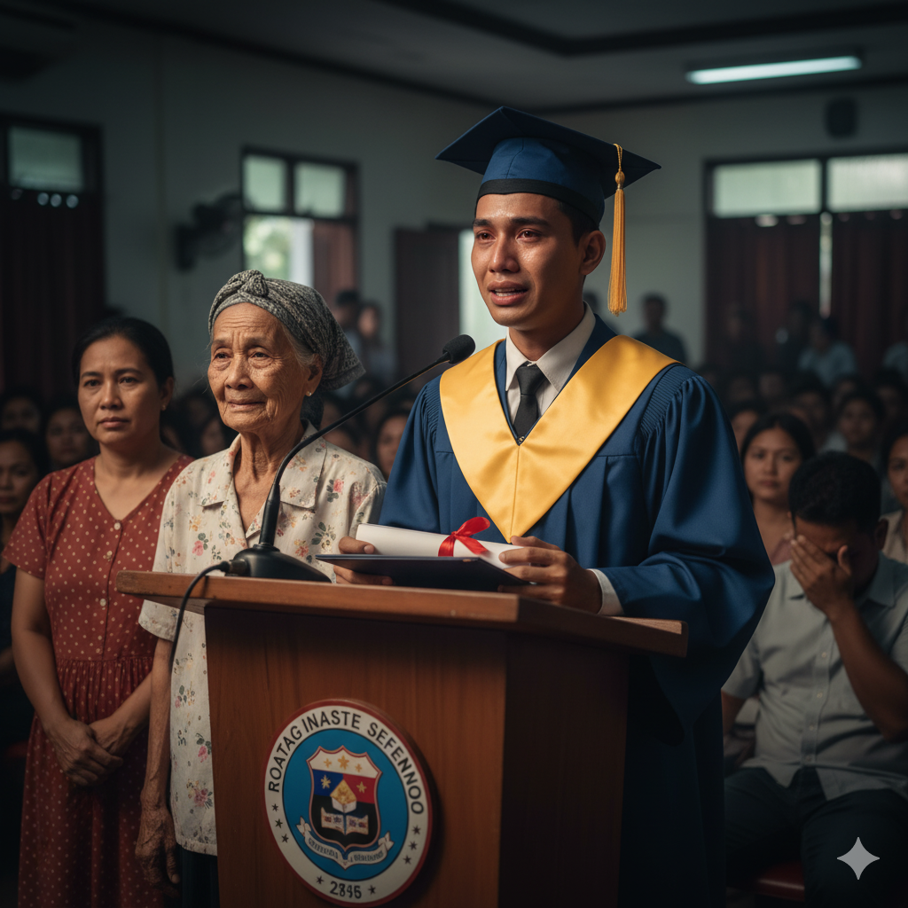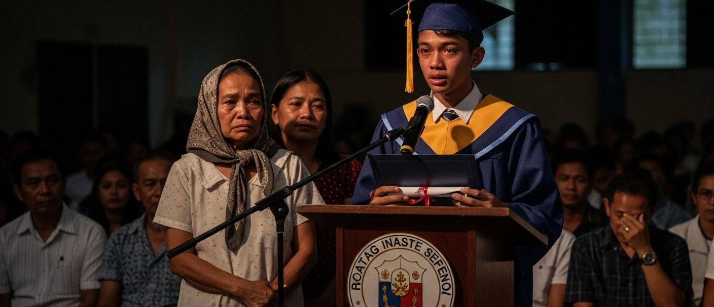 “Maraming salamat po sa mga guro, sa mga kaklase, sa lahat ng nandito. Pero higit sa lahat, salamat sa isang taong madalas n’yong nilalait — sa nanay kong namumulot ng basura.”