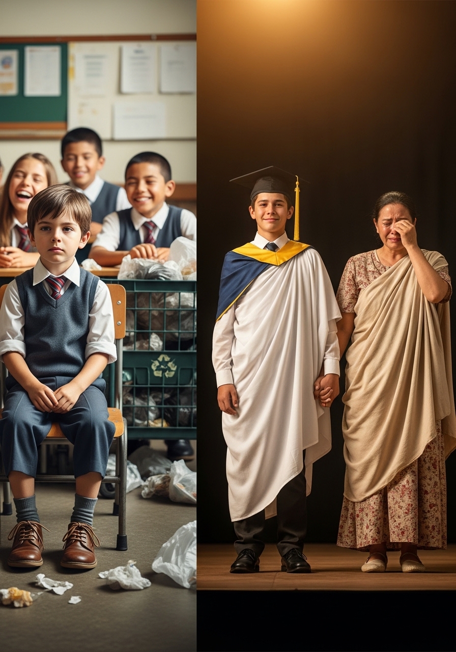 “AYAW NILANG UMUPO SA TABI KO DAHIL ANAK AKO NG BASURERA — PERO ISANG SALITA KO LANG ANG NAGPAIYAK SA BUONG PAARALAN SA GRADUATION.”