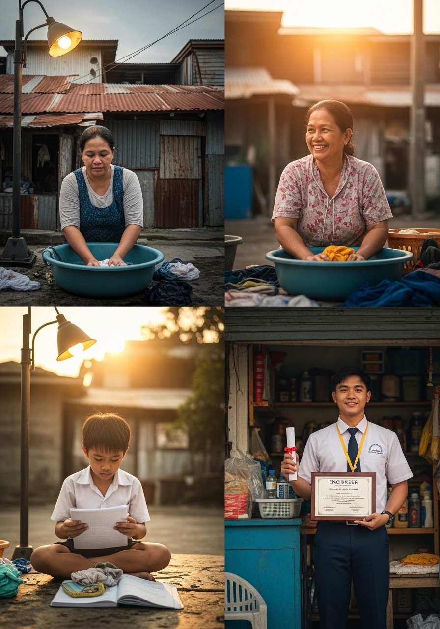 Lumaki ako sa maliit na barong-barong sa gilid ng estero. Yung tipong pag-umulan, kailangan mong gumamit ng tabo para saluhin ang tumutulong tubig mula sa bubong. Si Nanay, labandera. Si Tatay, minsan karpintero, madalas wala. Pero kahit gano’n, hindi nila hinayaang mawala ang pag-asa sa bahay namin.