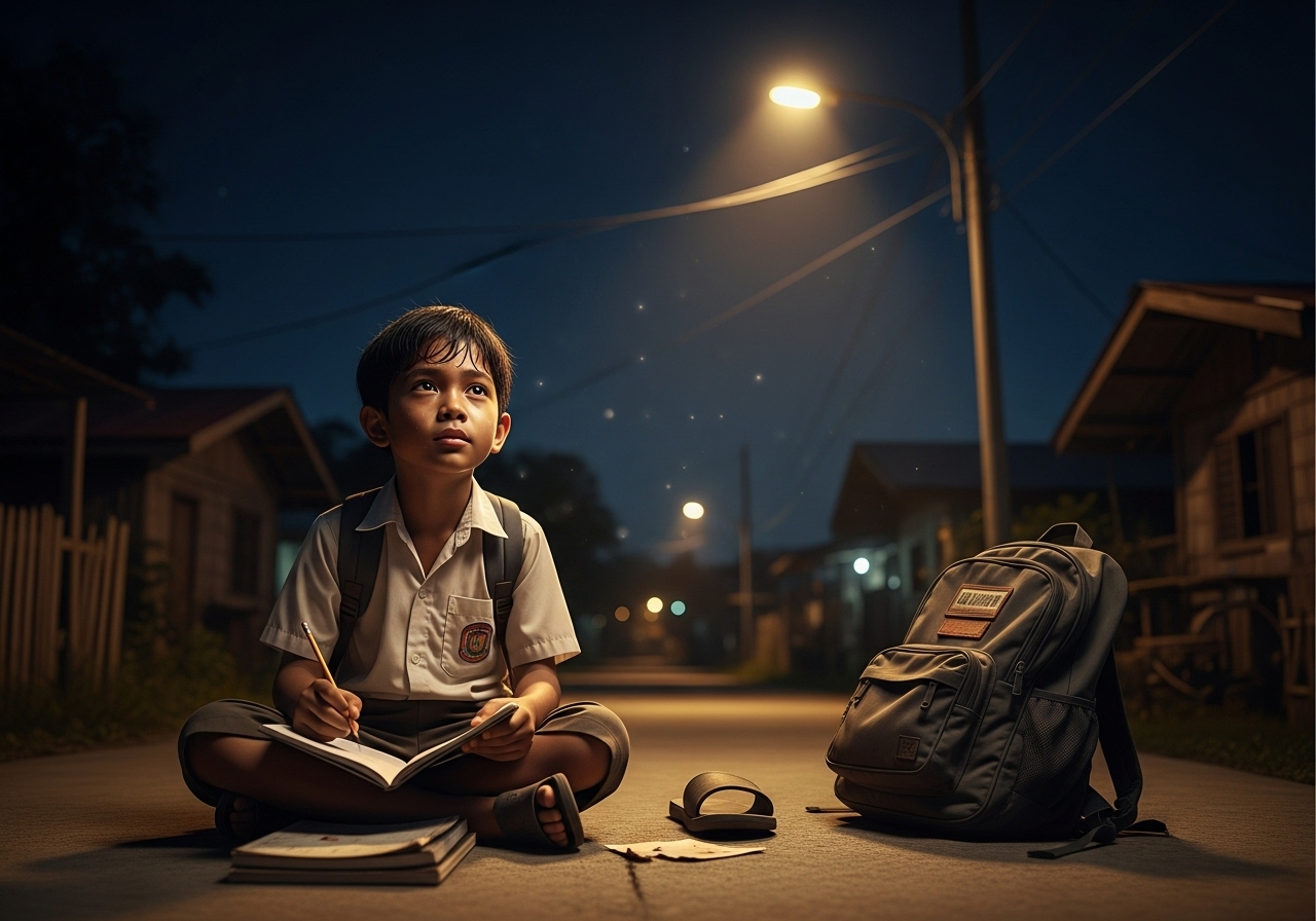Sa isang tahimik na sulok ng baryo, may isang ilaw na laging nakasindi tuwing gabi—hindi mula sa bahay, kundi mula sa poste ng ilaw sa kanto. Doon, gabi-gabing nakaupo si Miguel, 14 taong gulang, may bitbit na lumang notebook at lapis na halos wala nang dulo. Habang ang ibang kabataan ay nakahiga na sa komportableng kama, siya ay patuloy pang kumakapit sa pangarap na minsan niyang pinangarap kasama ang kanyang ina.