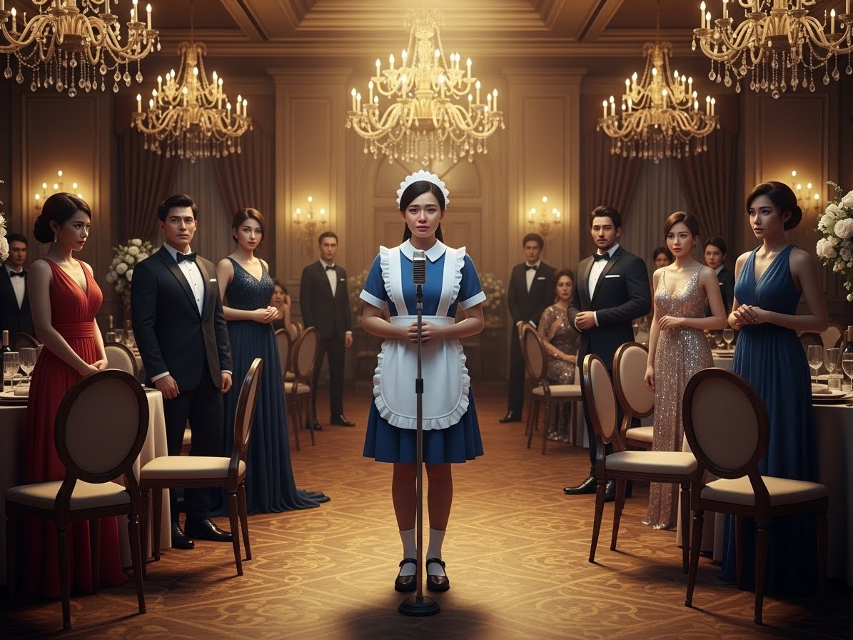 At ako? Nakasuot pa rin ng uniporme ng katulongโ€”pero hawak ang mikropono. Bumibigat ang hininga ko sa gitna ng daan-daang matang nakatitig sa akin. May iba ang nagulat, ang iba napangisi, ang iba halatang galit.