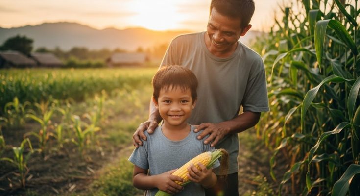 At sa gitna, naroon si Lucas—may hawak na mais na bagong pitas, parang regalong ginto.