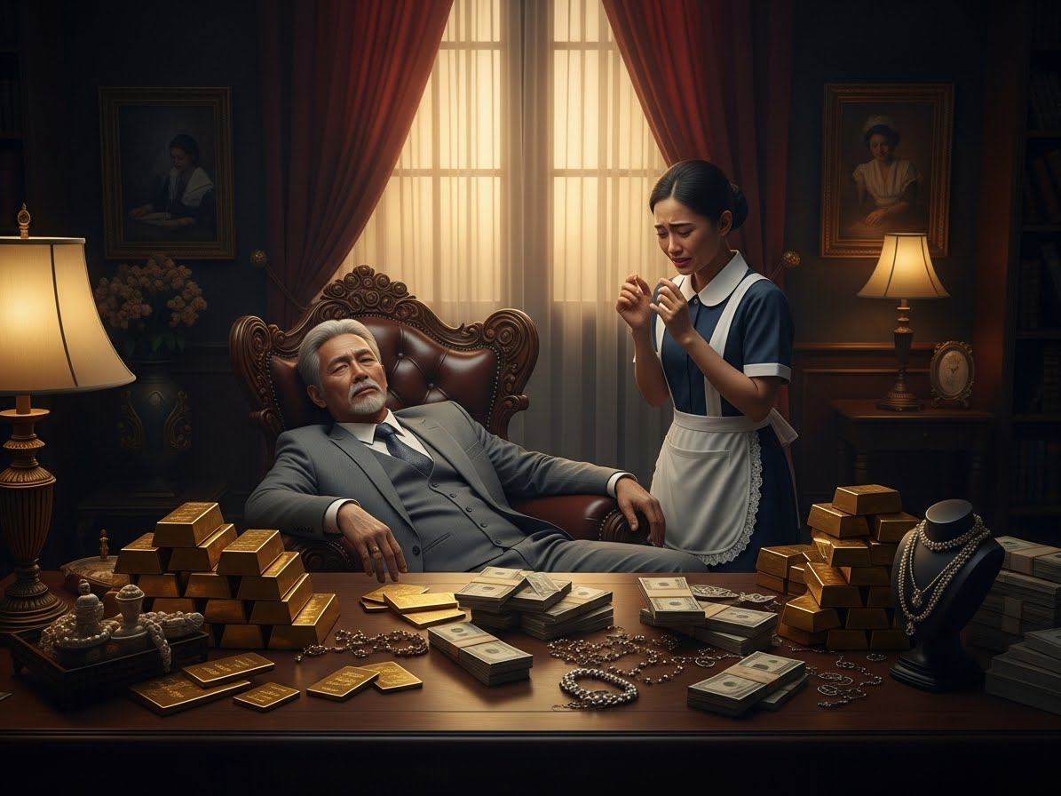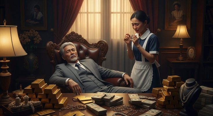 Si Liza, ang dalagang katulong na matagal nang naglilingkod sa kanya, ay nakatayo sa tabi ng mesa kung saan nakalatag ang mga gintong bara, kwintas, at makakapal na bundle ng pera. Hindi siya makapaniwala sa nakikita. Para bang naroon ang buong yaman ng mundo.